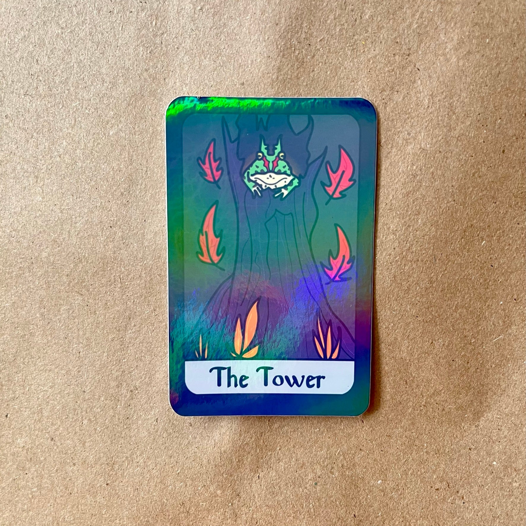 Tarot Frog - The Tower Holographic Glaze Vinyl Sticker 1.91" x 3"
